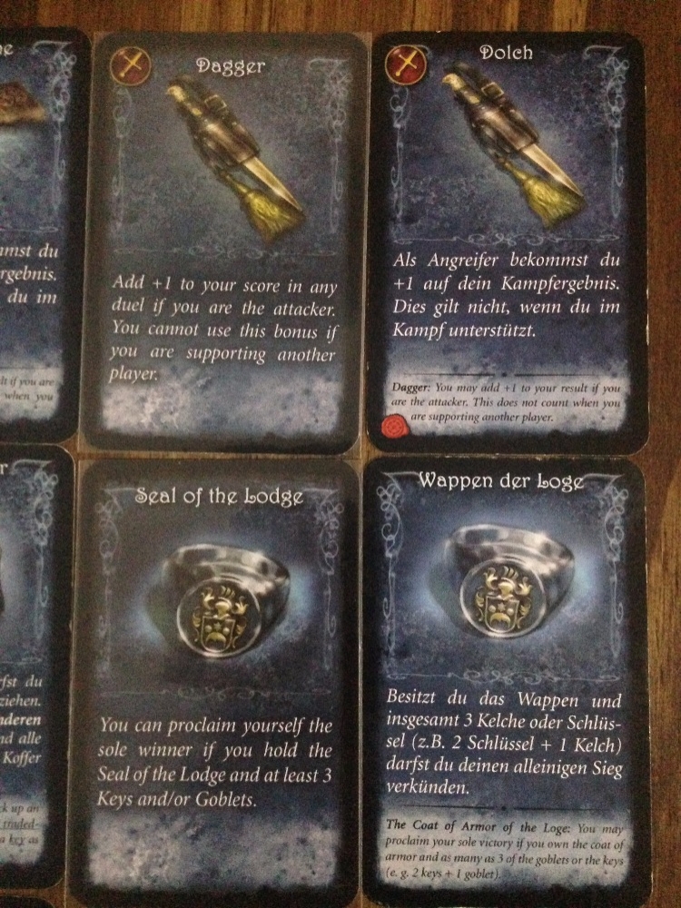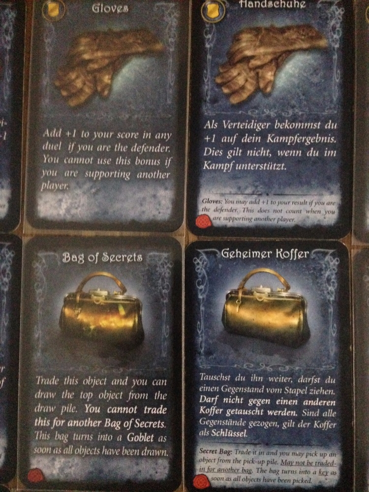 Comparação entre itens do CotD (c/sleeves) e KTzT (s/sleeves) Die Kutschfahrt zur Teufelsburg