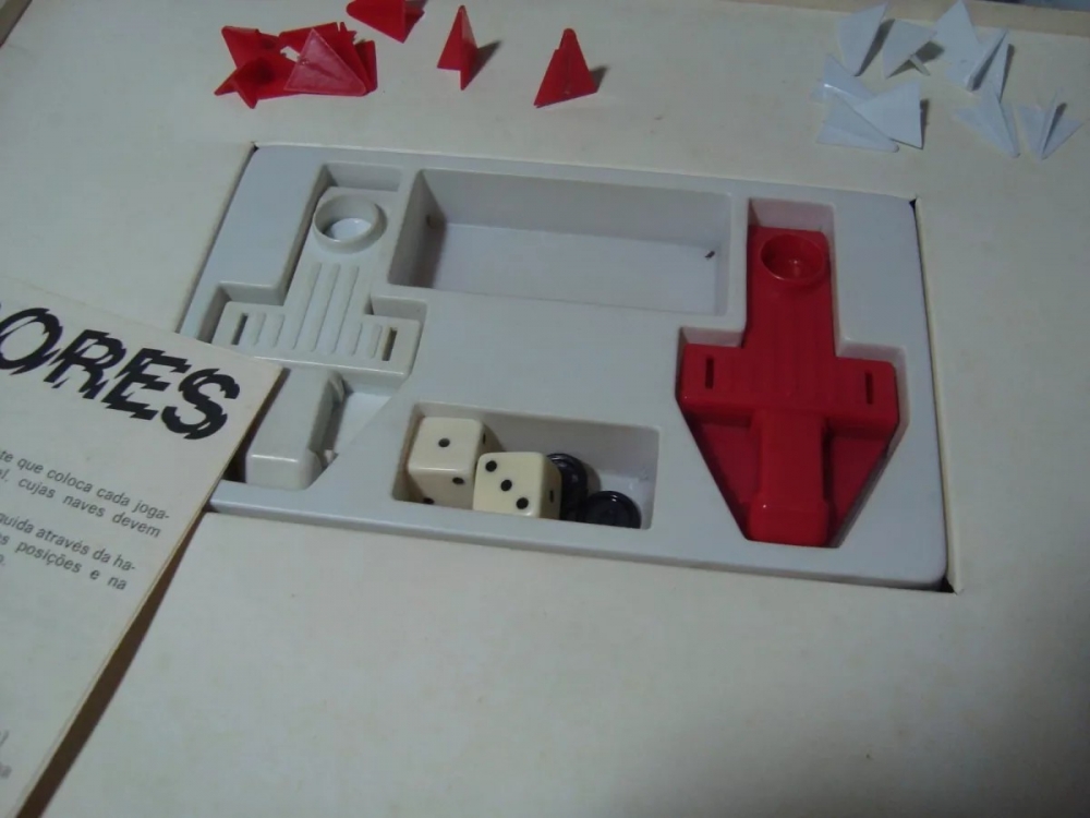 Caixa, insert e tabuleiro do jogo Invasores. Invasores