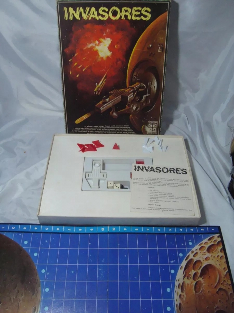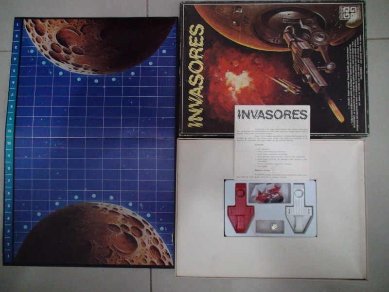 Caixa e tabuleiro do jogo Invasores. Invasores