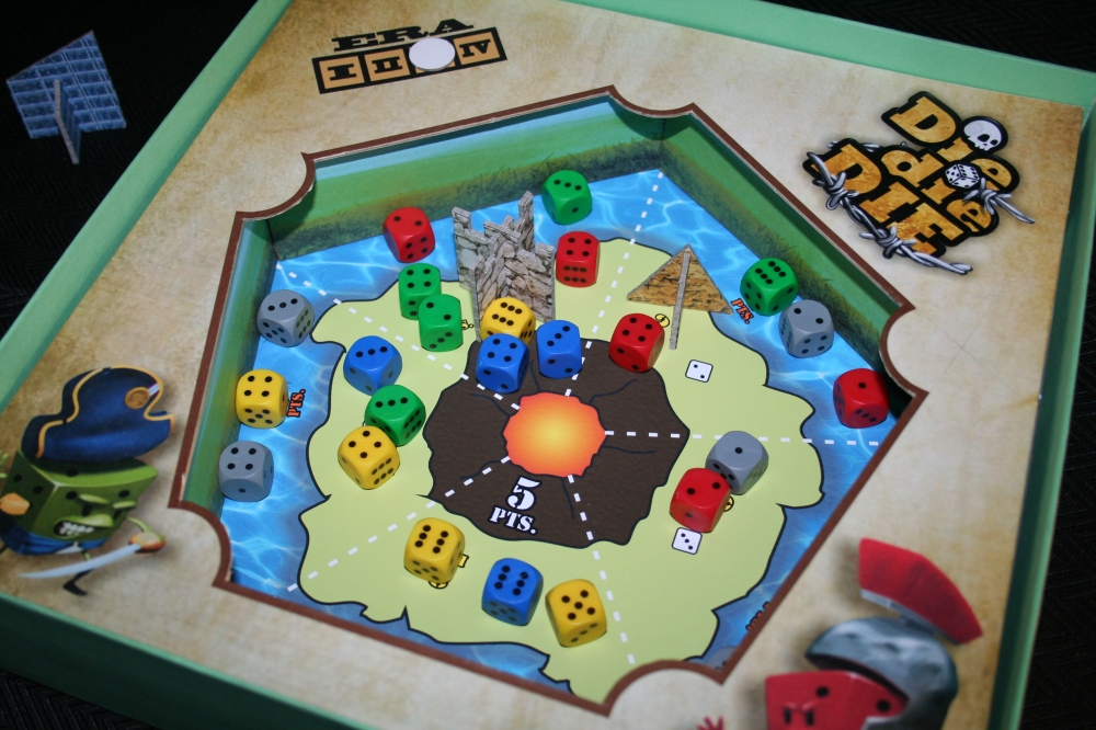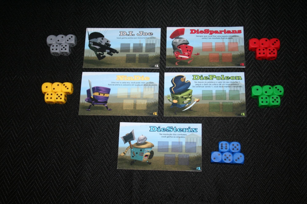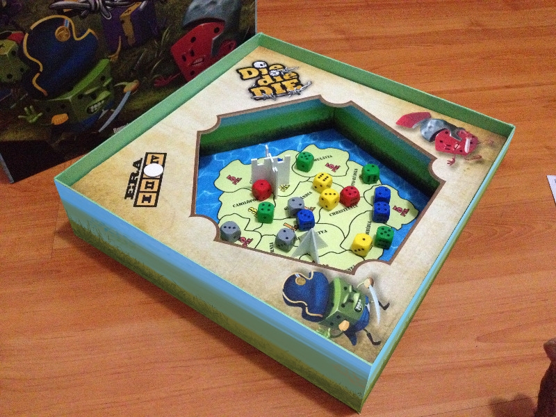 Todos os componentes do jogo. Die die DIE
