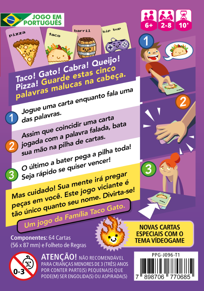 Cartas do Jogo Taco Cat Goat Cheese Pizza 8 Bit edition