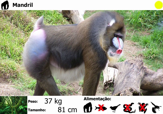 Exemplo de carta: Mandril (verso com os dados do animal) Cites: Card Game