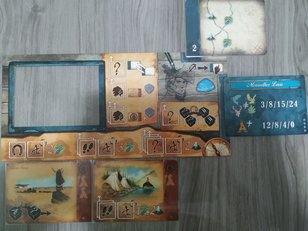 componentes e tabuleiro Discoveries: The Journals of Lewis & Clark