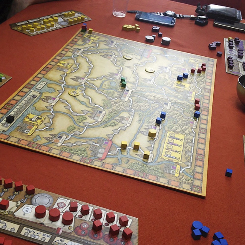 Partida em andamento. Grupo "Carpeta SM", de Santa Maria - RS. 2012. Hansa Teutonica