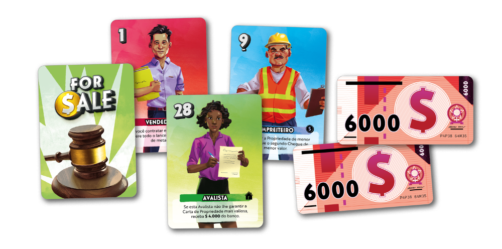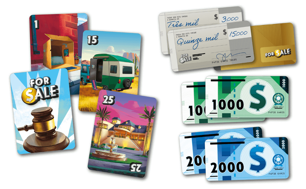 Alguns componentes do jogo For Sale