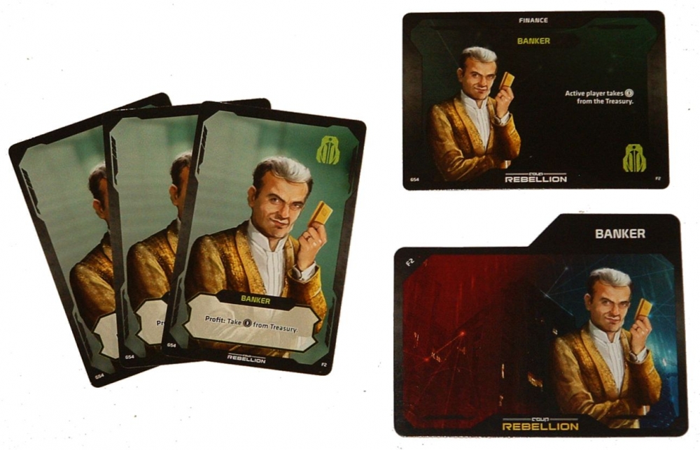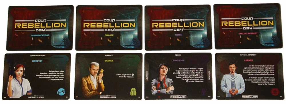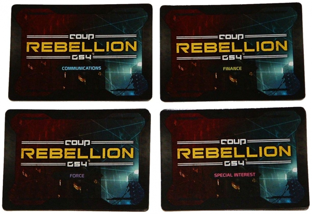 Frente das Cartas: Repórter, Fazendeiro, Juíz, Político Coup: Rebellion G54