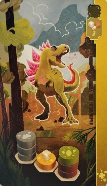 Com este Espírito da Natureza, você ganha 2 pontos para cada cubo Animal conectado ao seu cubo Espírito da Natureza. No exemplo ao lado, esta carta rende 12 pontos. No modo solo, esta carta vale 0 Sol. Harmonies - 4 Nature's Spirit Pawns and 1 Exclusive Nature's Spirit Card