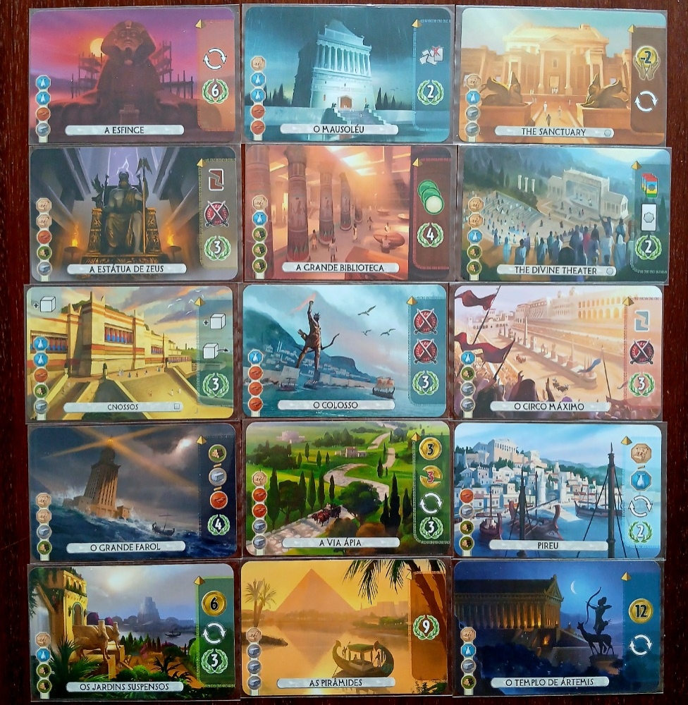 7 wonders base + Expansões (Panteão e Àgora) 7 Wonders Duel