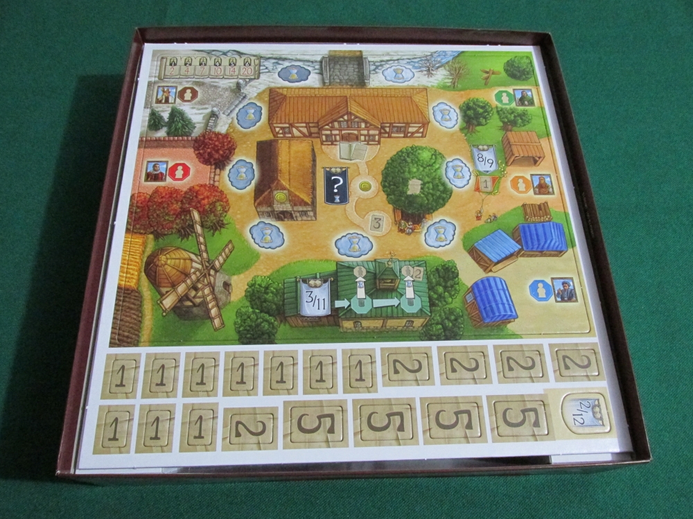 Unboxing: Tabuleiro de jogador, tokens de dia do trabalho, pontos de vitória e bandeira branca My Village
