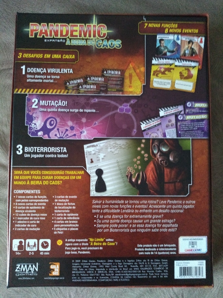 Verso da caixa versão Galápagos. Pandemic: On the Brink