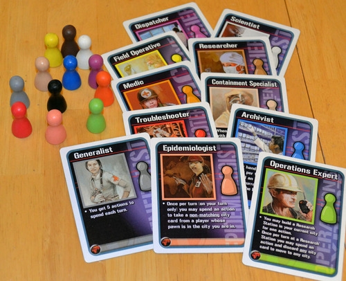 Personagens da expansão e jogo base, ambos versão Galápagos. Pandemic: On the Brink