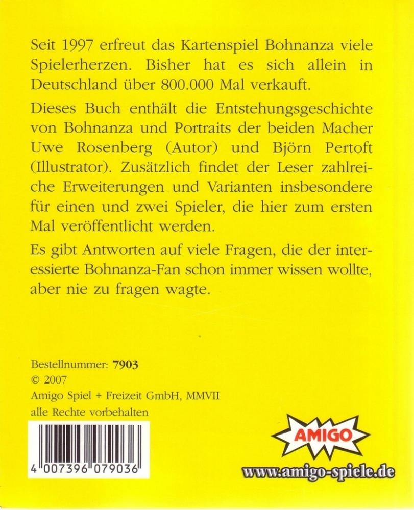 Caixa do jogo, visão traseira (alemão) Bohnanza: Das Fanbuch