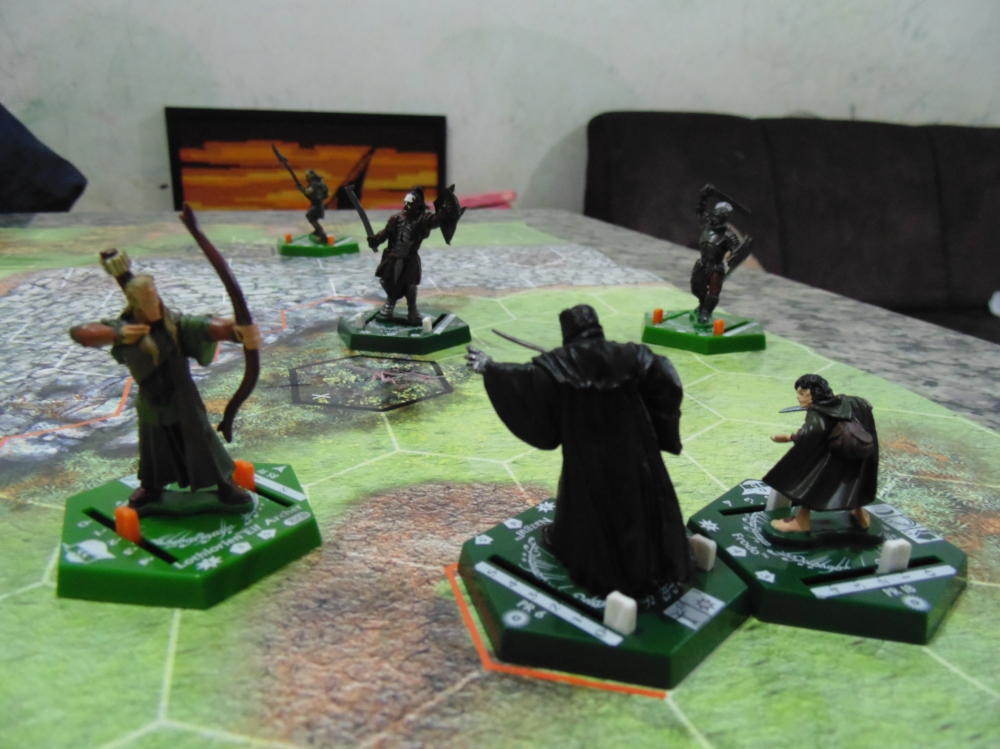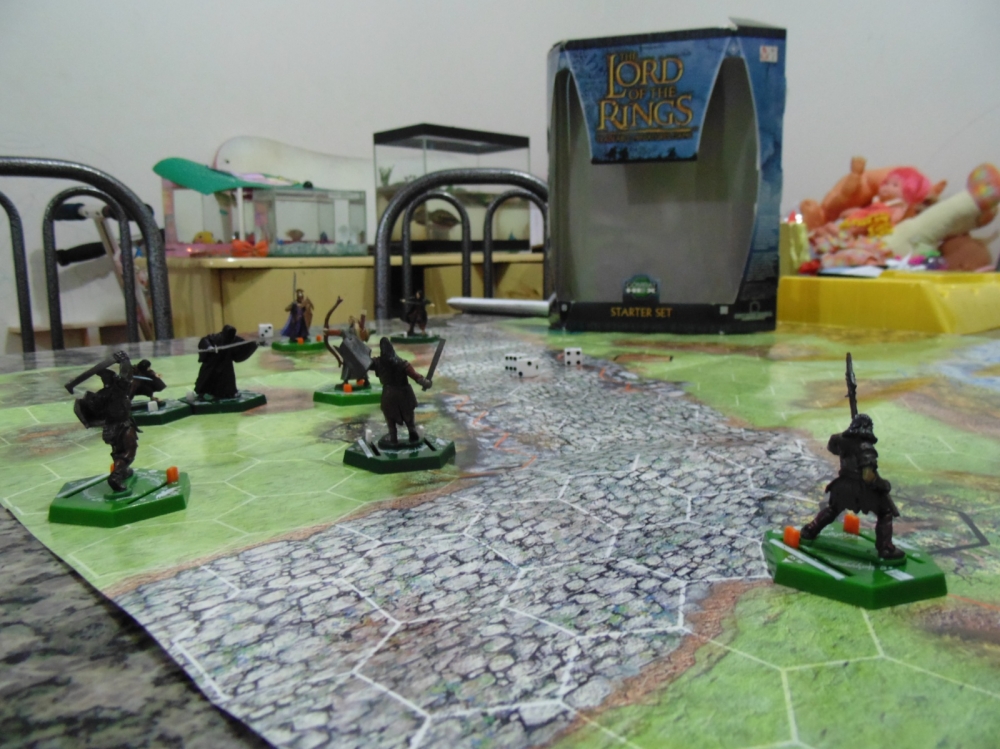 Batajha em andamento Legolas e Frodo tentando derrotar os Viloes The Lord of the Rings: Combat Hex Tradeable Miniatures Game
