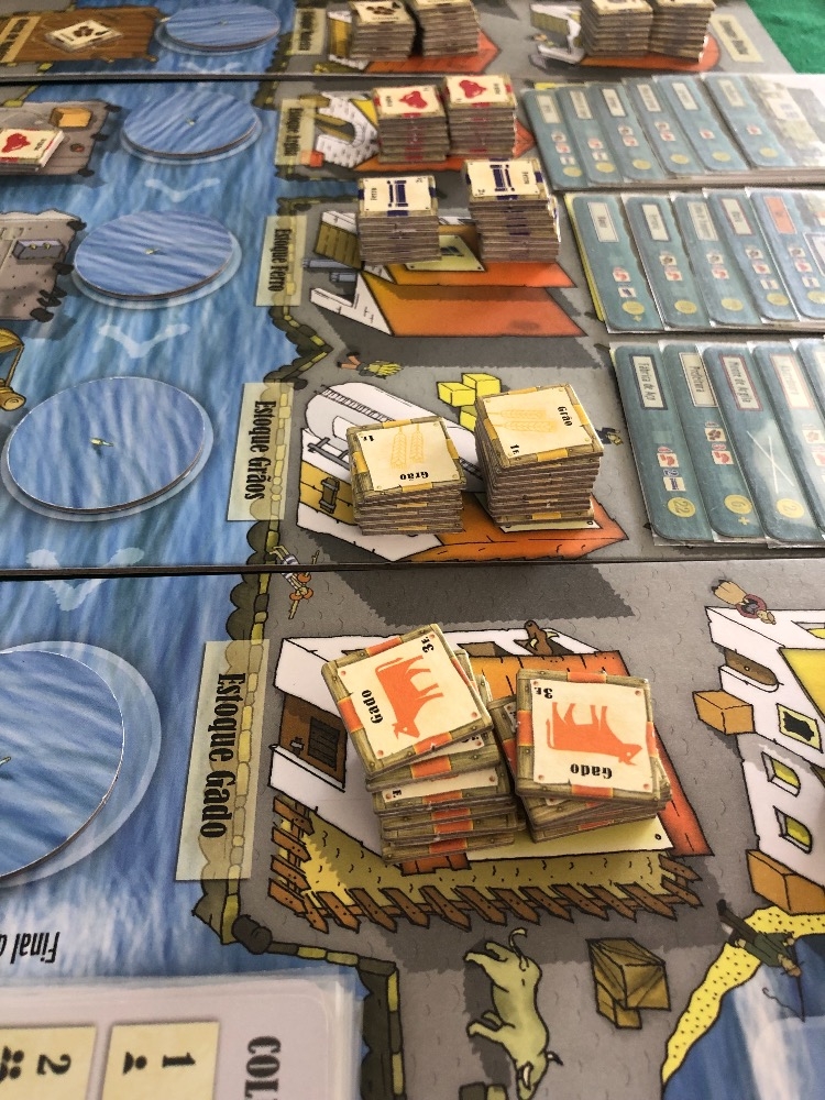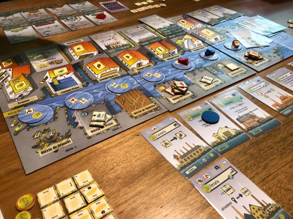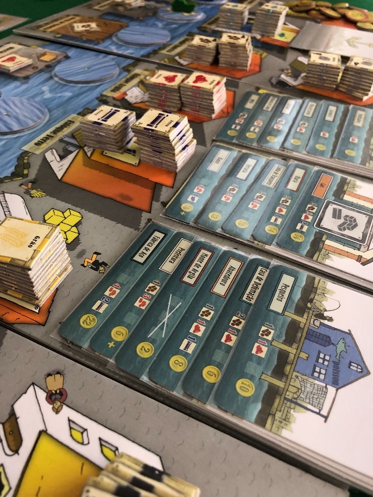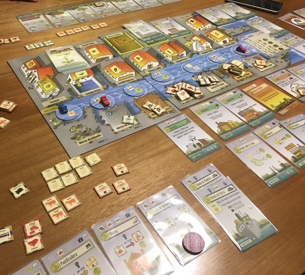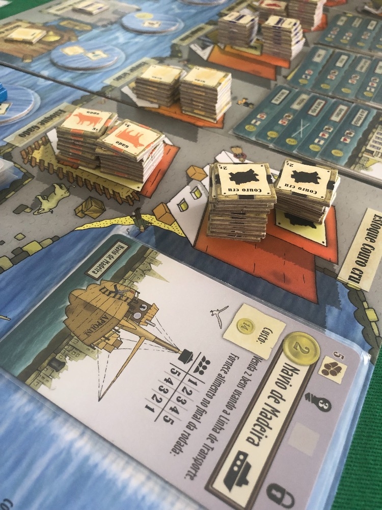 Caixas de papel paraná forradas com imagem aqui da ludopedia Le Havre