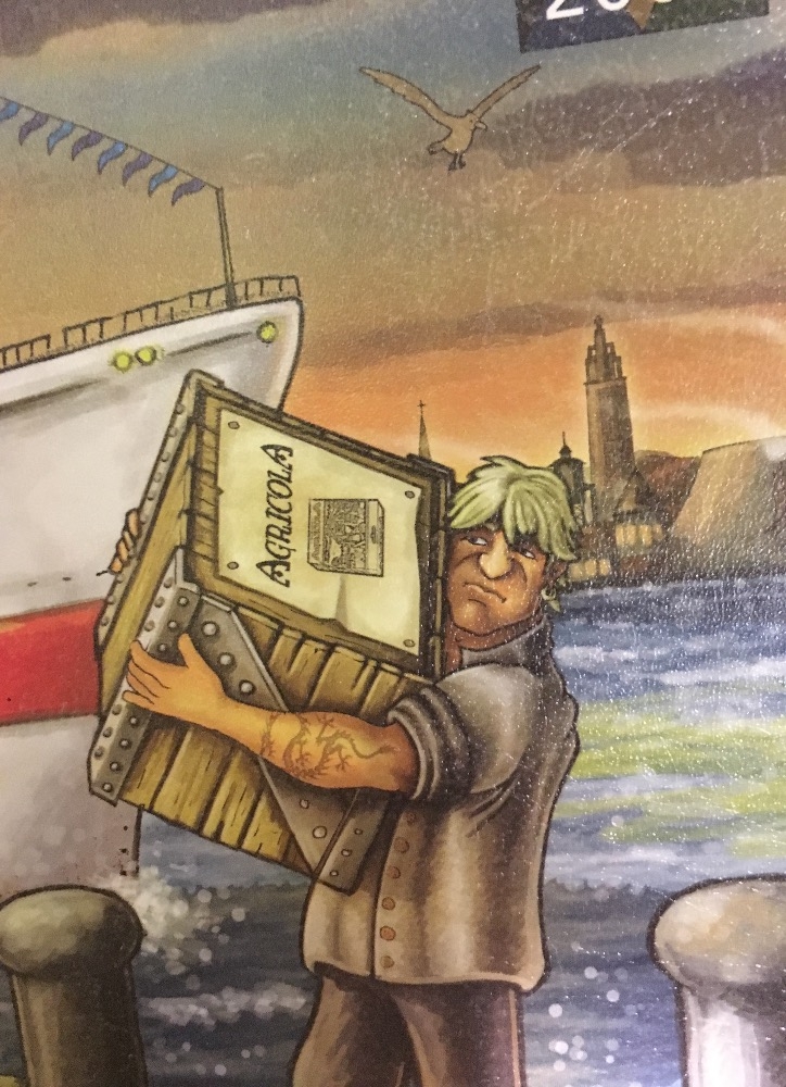 Detalhe da caixa em homenagem a outro jogo do Uwe: Agrícola Le Havre