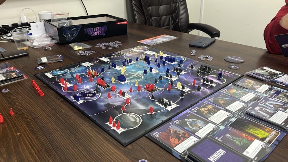 Componentes organizados na caixa do jogo. Tyrants of the Underdark