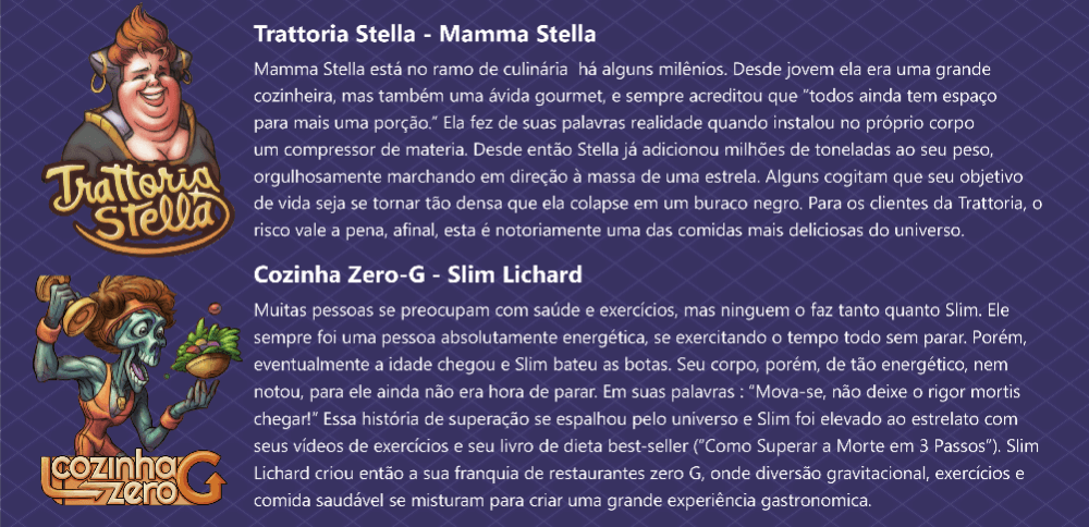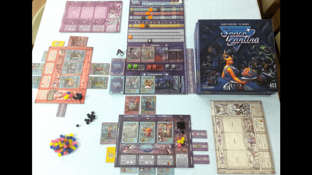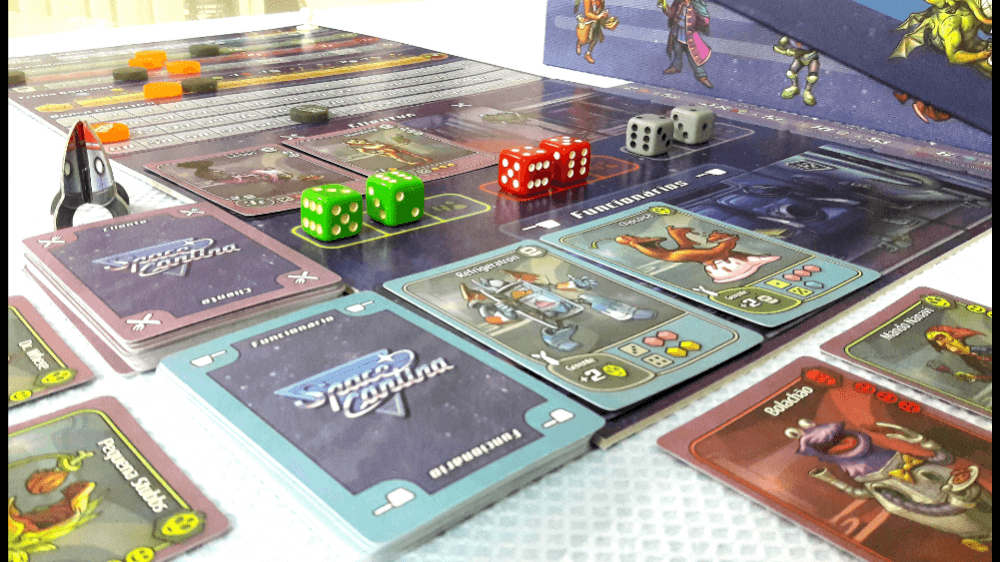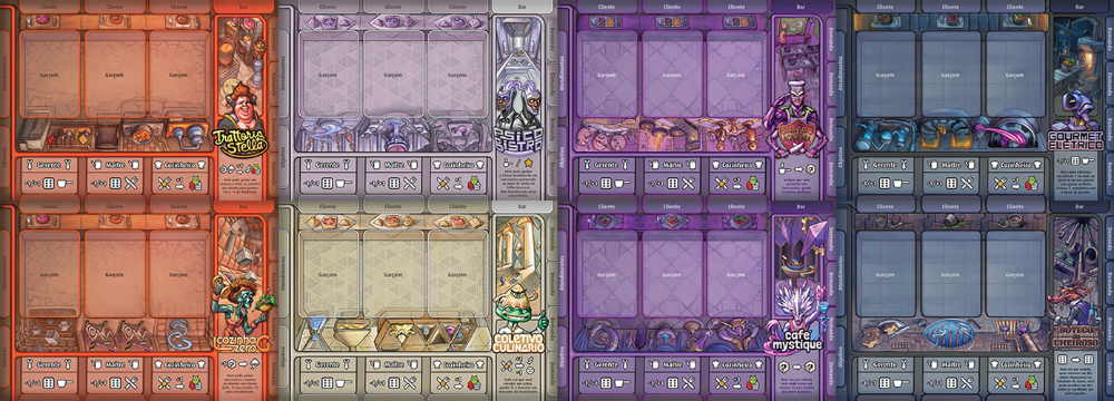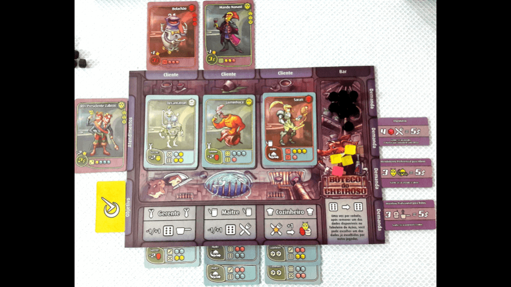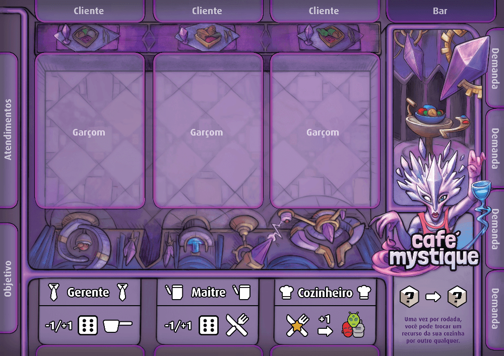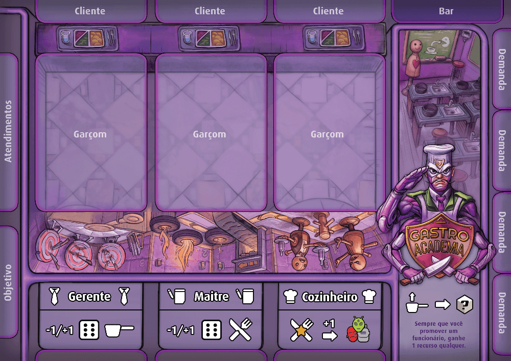 Tabuleiro de escolhas de dado, garçons e clientes Space Cantina