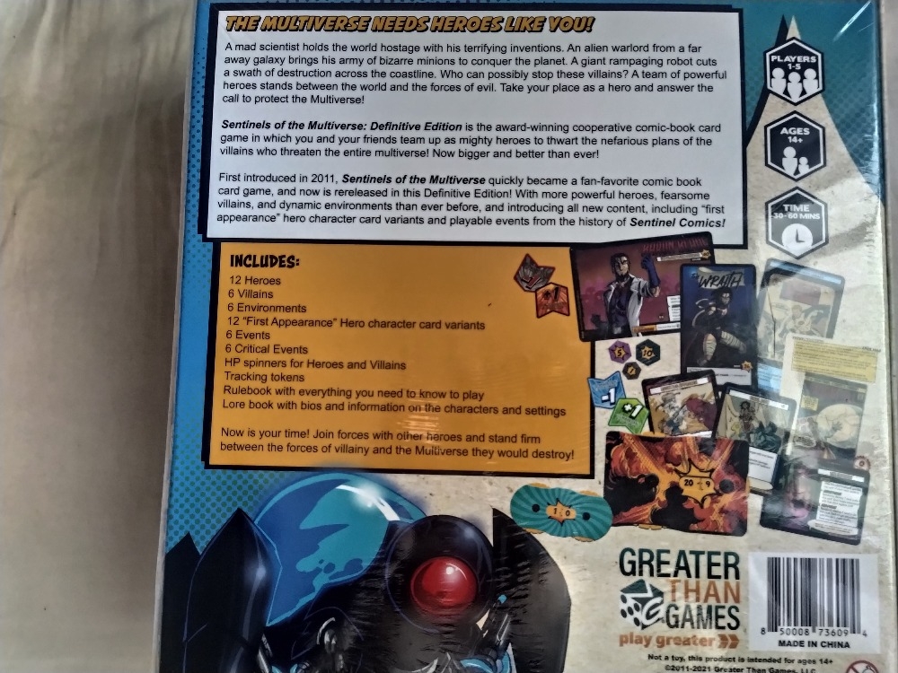 Caixa do jogo (costas) Sentinels of the Multiverse: Definitive Edition