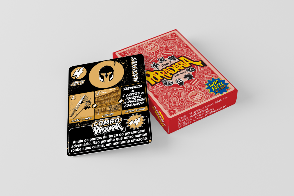 Detalhe da caixa do conjunto Deck 1 e Deck 2 Porradaria Card Game