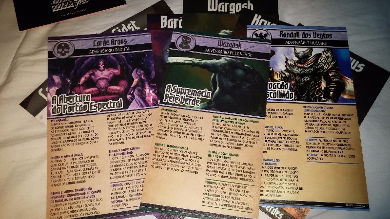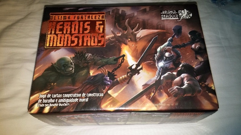 Interior da caixa e cartas sleevadas Heróis e Monstros