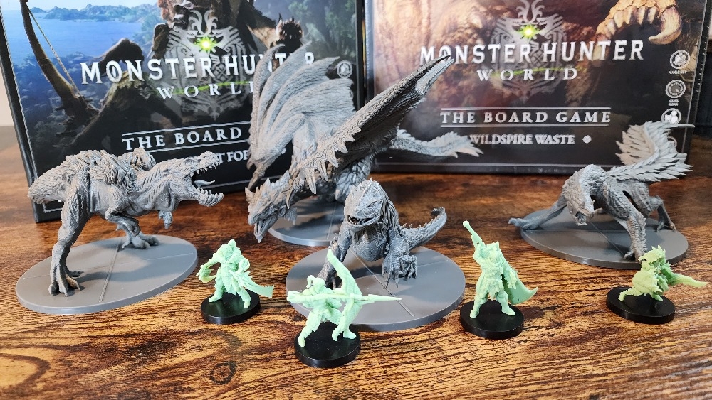 Miniaturas disponíveis na caixa base do Ancient Forest Monster Hunter World: The Board Game - Ancient Forest
