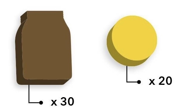 Caixa do jogo Dogs Expansão: O Sócio - Kit 30 tokens de madeira