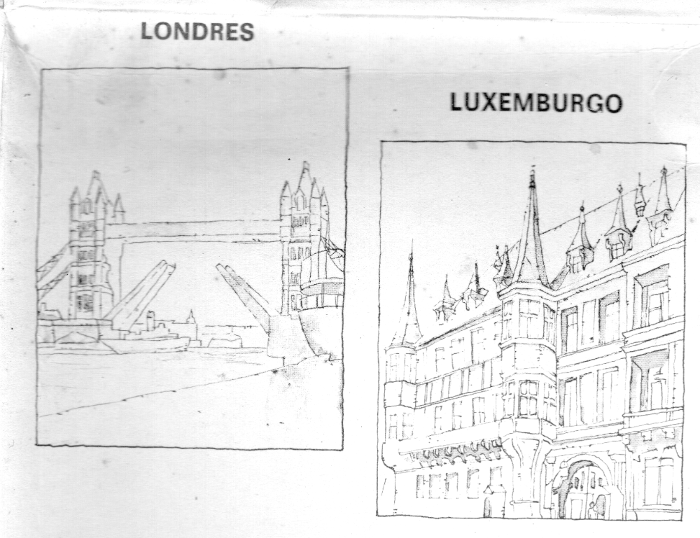Londres e Luxemburgo - Ilustração preto-e-branco dentro da caixa Journey Through Europe