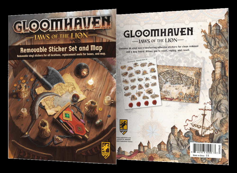Caixa do jogo Gloomhaven: Jaws of The Lion Removable Sticker Set & Map