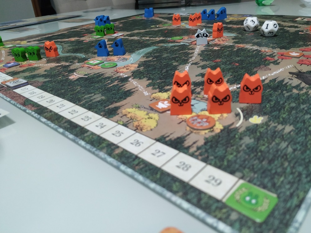 Partida jogada fazendo o caminho de ida e volta. A experiência foi divertida (como sempre), mas talvez seja necessário limitar algumas opções. Uma que pensamos seria limitar o número de compras de souvernirs para 1 por parada. Tokaido: Crossroads