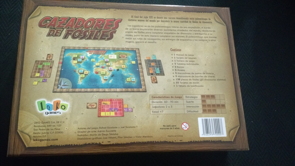 Parte de trás da caixa. Cazadores de Fosiles