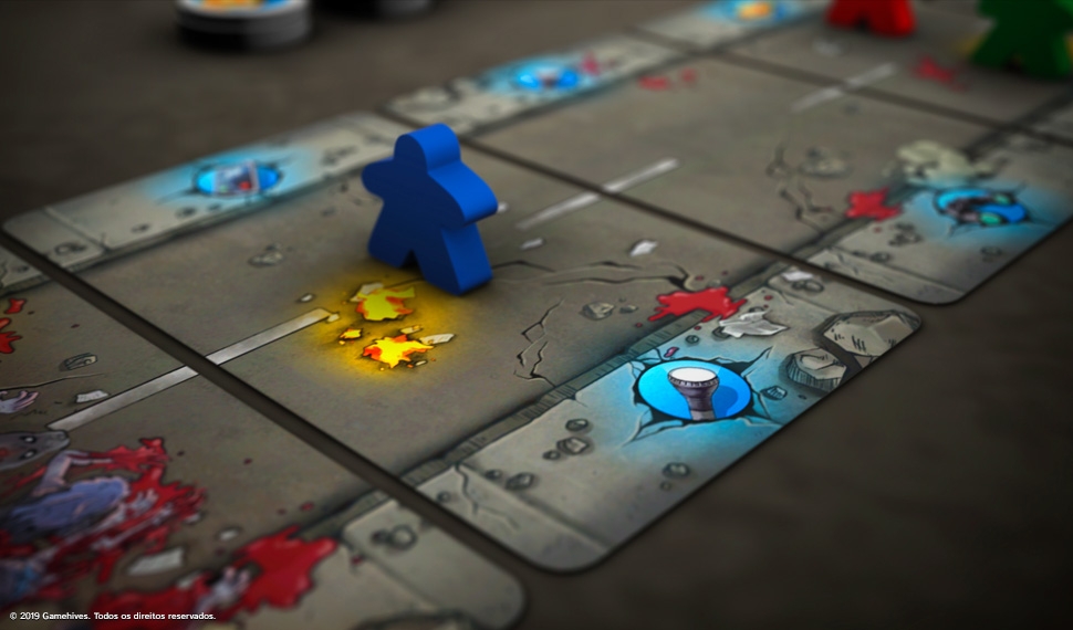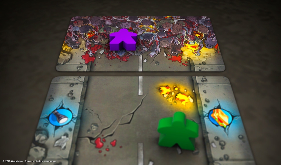 Detalhe do jogo na mesa Zurvivors