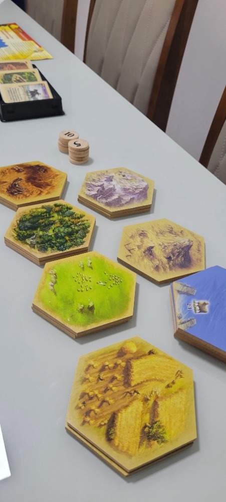 Detalhes dos tiles The Settlers of Catan: 15th Anniversary Wood Edition