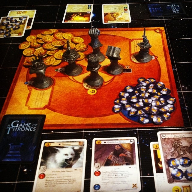 Stark X Lannister (sim, os tokens não são utilizados nessa partida de 2, mas a foto fica mais legal com eles) A Game of Thrones: The Card Game