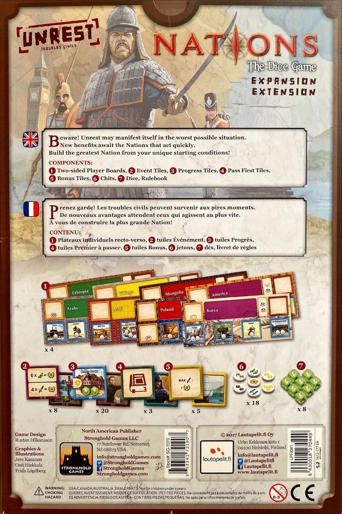 Parte traseira da caixa Nations: The Dice Game – Unrest