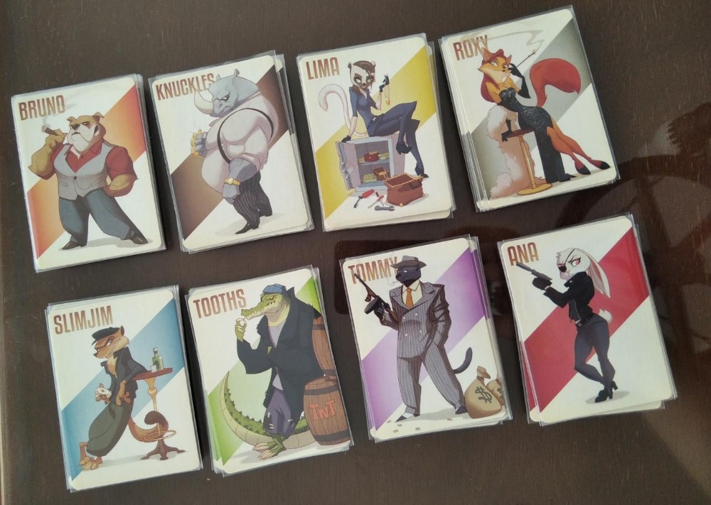 Cartas de ação - viradas pra baixo exibindo os oito personagens. GoodCritters