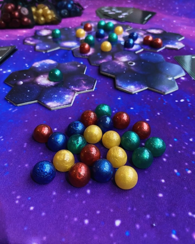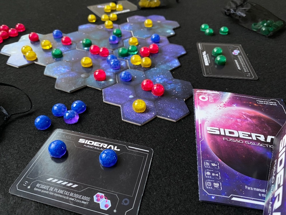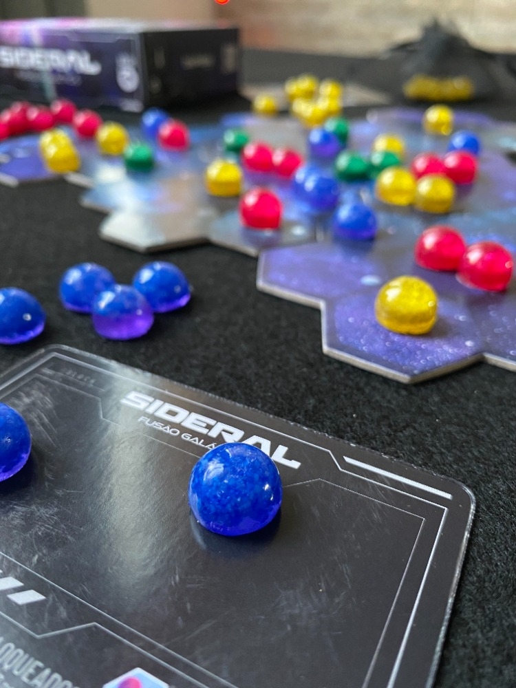Zoom no tabuleiro com partida em andamento Sideral - Fusão Galáctica