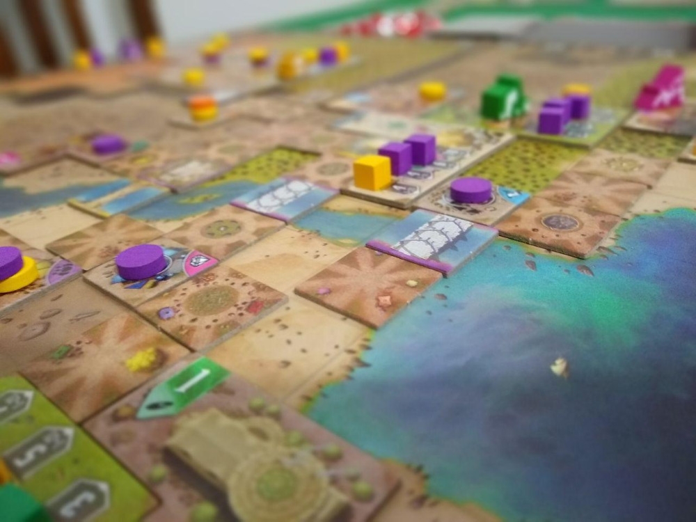Jogo em andamento, tabuleiro protótipo. Gandhi: The Decolonization of British India, 1917 – 1947
