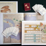 Componentes: Manual, Mapa (Tabuleiro), Tabuleiro de Administração de Recursos, Cartas de Eventos e Tokens de Recursos e Povos Invasores Constantinople