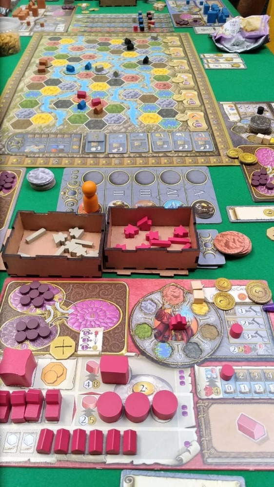 Partida disputada com 6 jogadores Viticulture Essential Edition