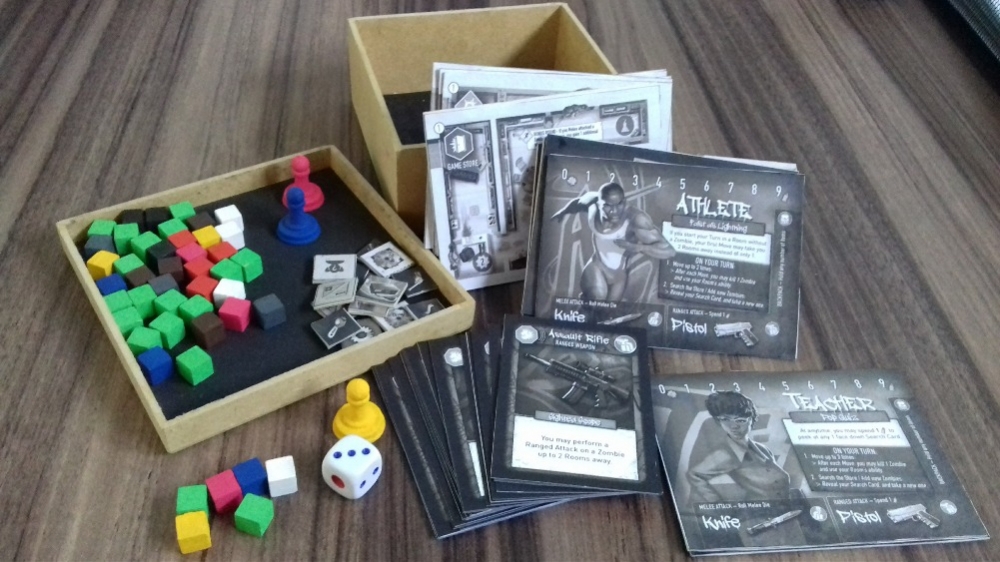 Meu kit preparado da versão print-and-play Tiny Epic Zombies