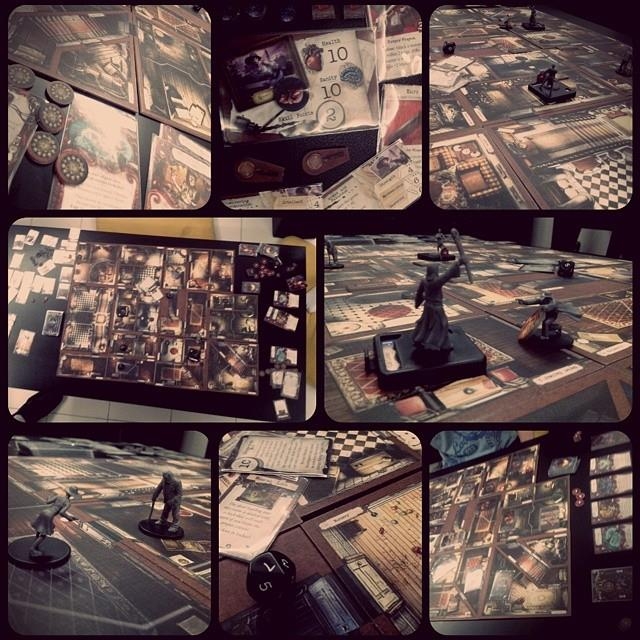 Na imagem Os ultimos momentos de Joe Diamont antes de ser incinerado pelo líder cultista. Logo abaixo Harvey Walters descobre tarde demais que sua querida amiga Jenny Barnes enlouqueceu, o matando logo em seguida com dois tiros certeiros.. Mansions of Madness