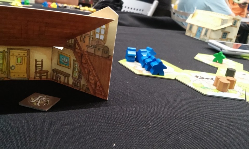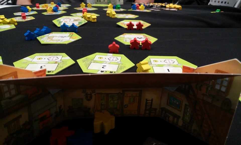 O escudo do jogador e sua vila. Jogo em andamento. Keyflower