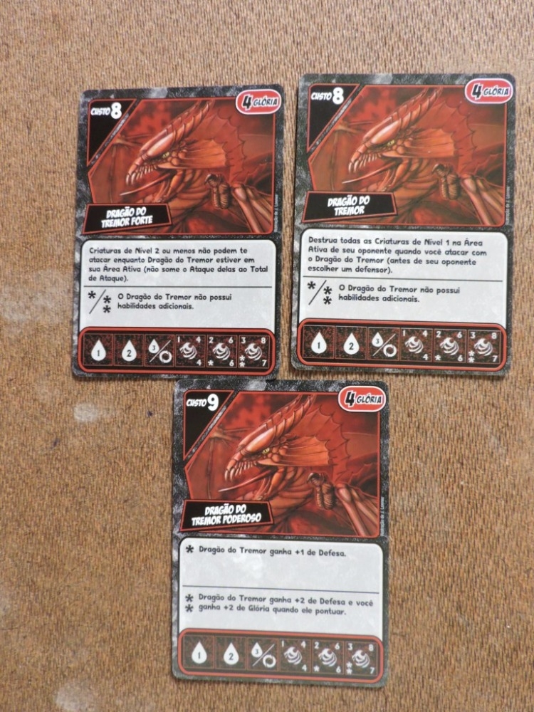 Os Tres tipos de cartas do jogo Quarriors!: Quarmageddon e Quest of the Qladiator