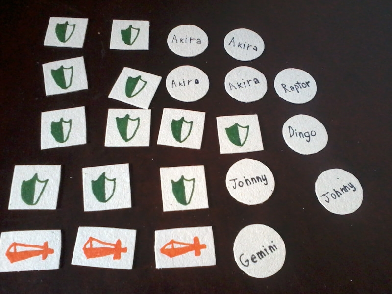 Fichas de marcação de modificadores e bônus (verso). Shift: The Single Card CCG