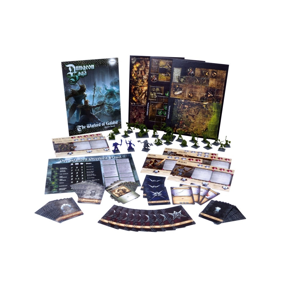 Componentes da expansão Dungeon Saga: The Warlord of Galahir