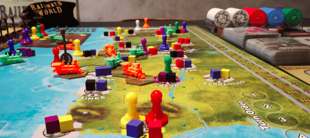 Mapa de Portugal + Event Deck + KS Promo Pack + Rail Barons of the world + Marcadores genéricos para indicação das Major Lines. Railways of Portugal