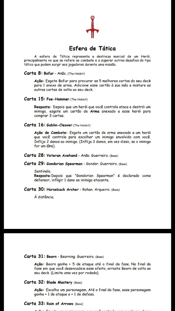 Tradução das cartas do jogo. The Lord of the Rings: The Card Game