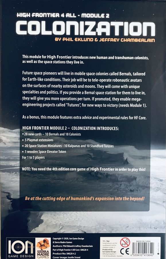 Parte de trás da caixa High Frontier 4 All: Module 2 – Colonization