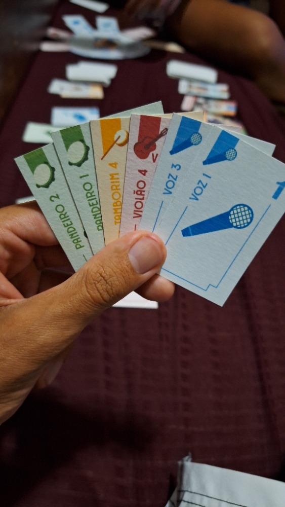 Cartas de instrumentos na mão do jogador Roda de Samba