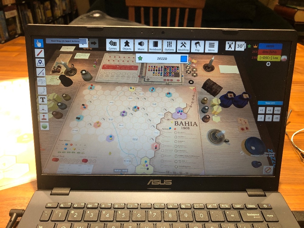Sessao de playtest do Bahia 1808 no tabletop simulator Age of Steam: Deluxe Edition